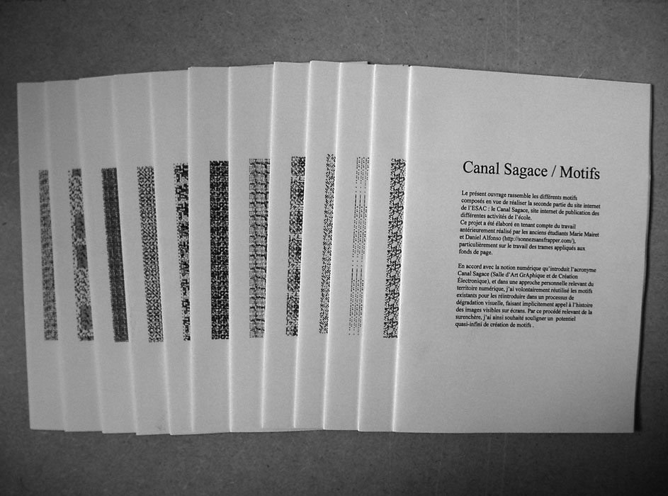 Image matrice 2 Projet de site web de l'ÉSAC - Canal Sagace - Utilisation des motifs préexistants sur le site web, pour en générer une nouvelle collection - 236 motifs -