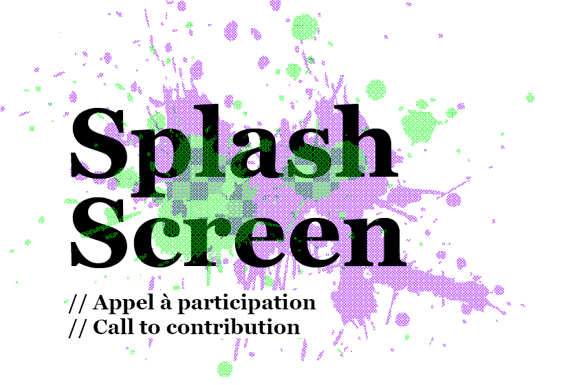 Splash Screen #01 Fanzineprojet en cours Édition ayant pour objectifs d'interroger notre univers numérique en collectant différents points de vue et interprétations personnelles sur des thématique relevant du jargon informatique. Page web du projet